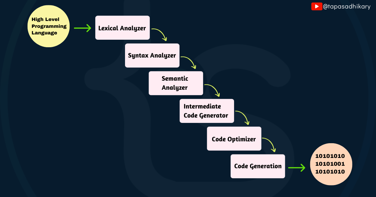 Проще говоря, компилятор — это программное обеспечение/инструмент, который переводит код высокоуровневого языка программирования (исходный код) в машинный код. Существует несколько шагов, которые нужно выполнить для компиляции исходного кода и генерации машинного кода: