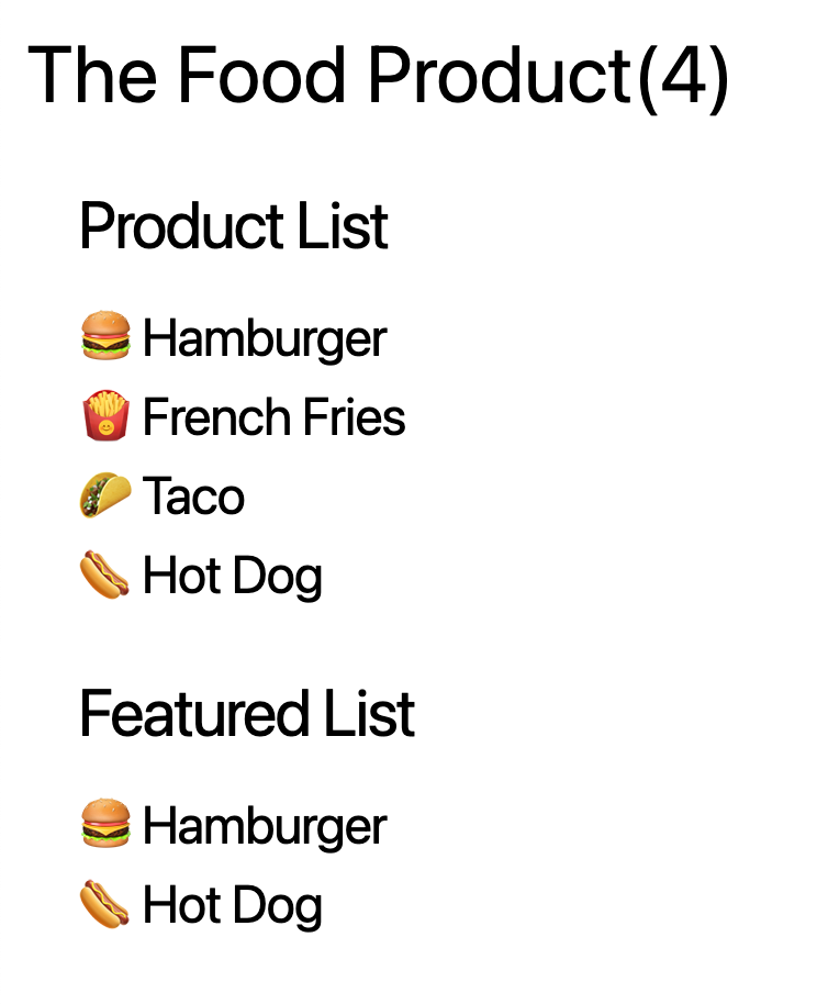 Давайте создадим простую страницу продукта с React. Страница продукта показывает заголовок с количеством продуктов на странице, список продуктов и рекомендуемые продукты.