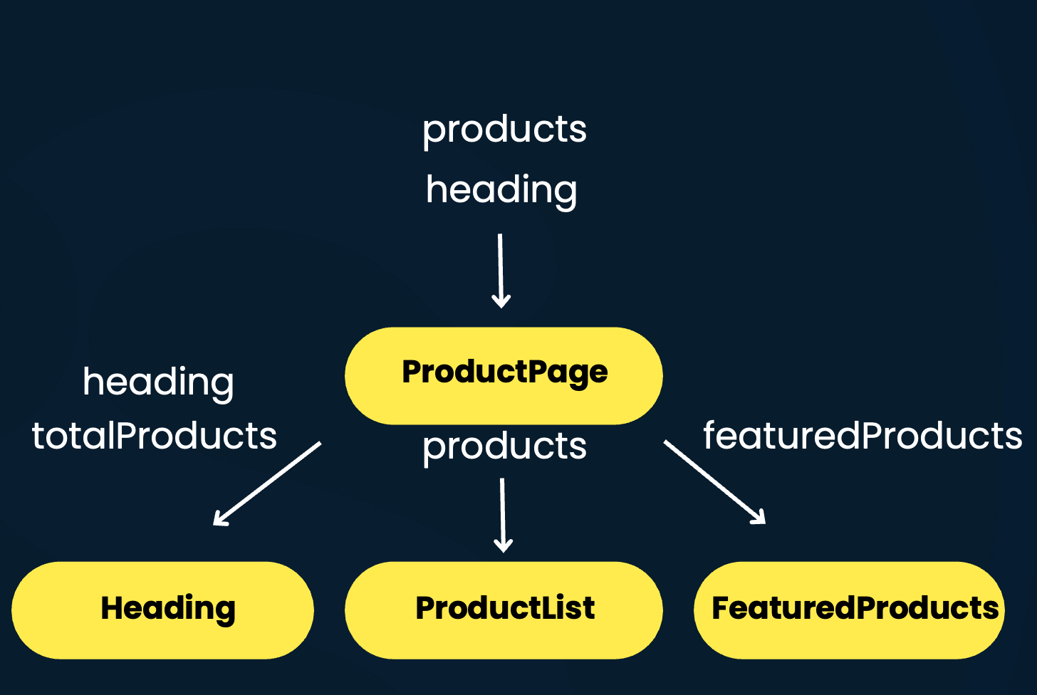 ProductPageимеет три дочерних компонента:Heading,ProductListиFeaturedProducts. - Компонент